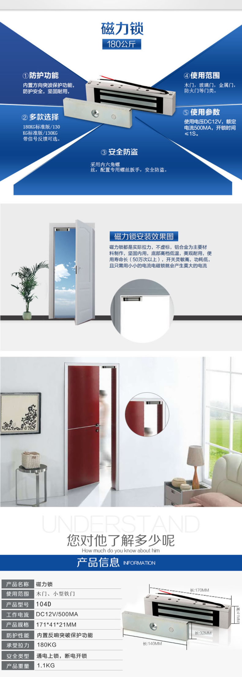 104D 磁力锁180kg磁力锁电磁锁180公斤磁力锁门禁系统锁