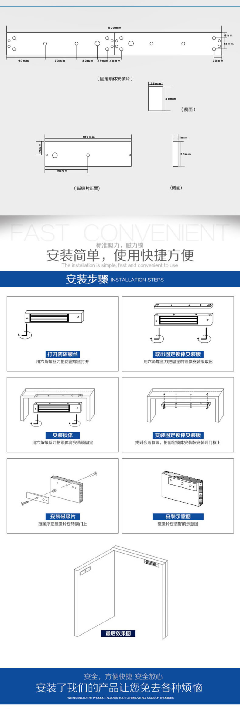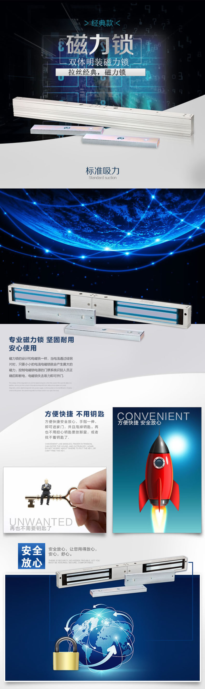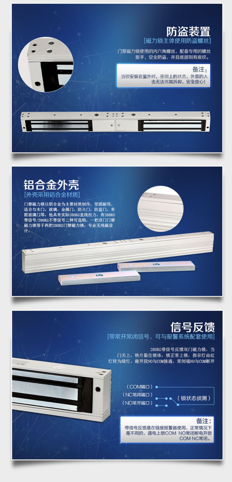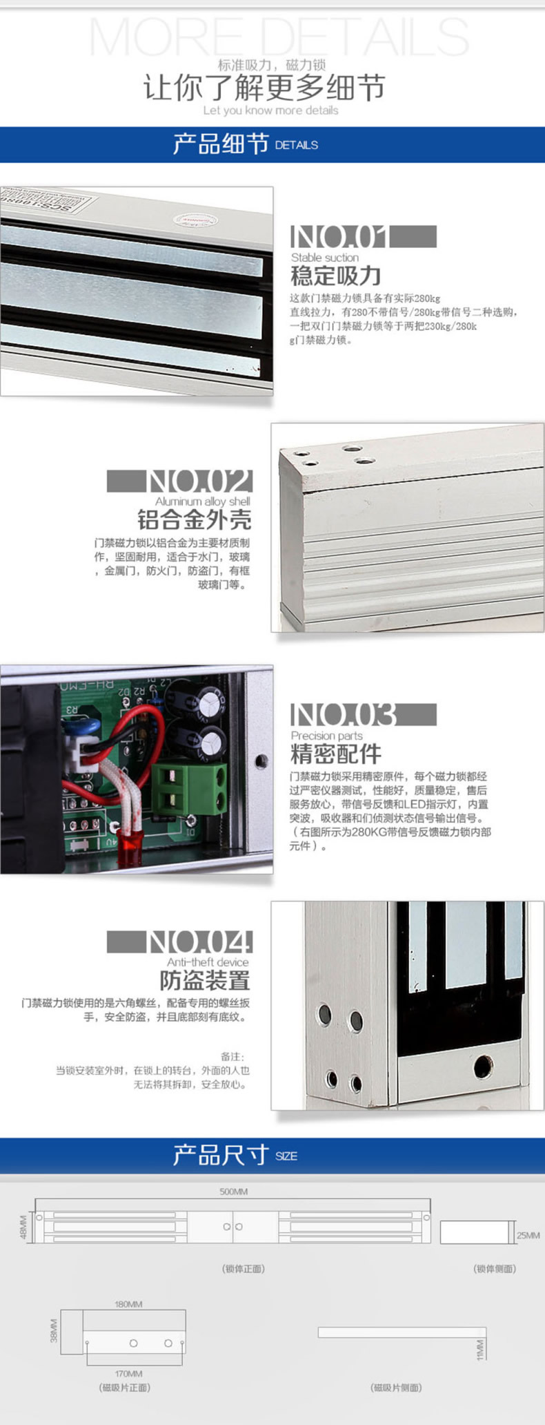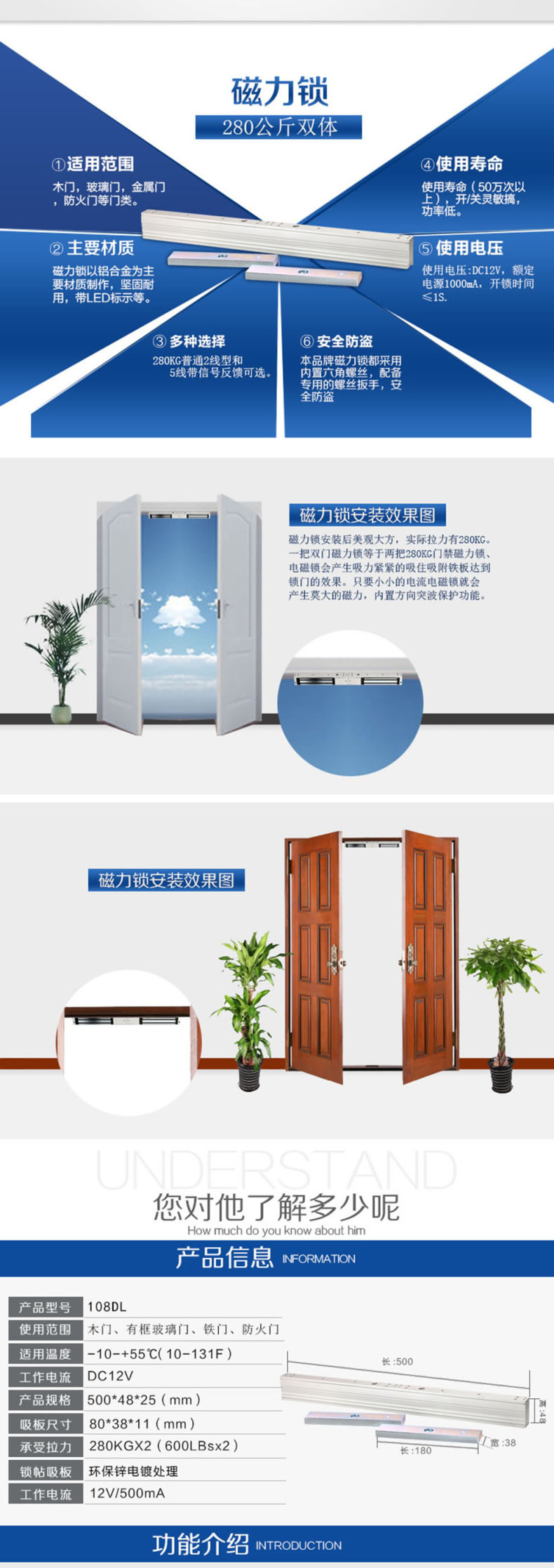 108DL 280公斤双体双门磁力锁/5线280kg电磁锁/高档金属拉丝