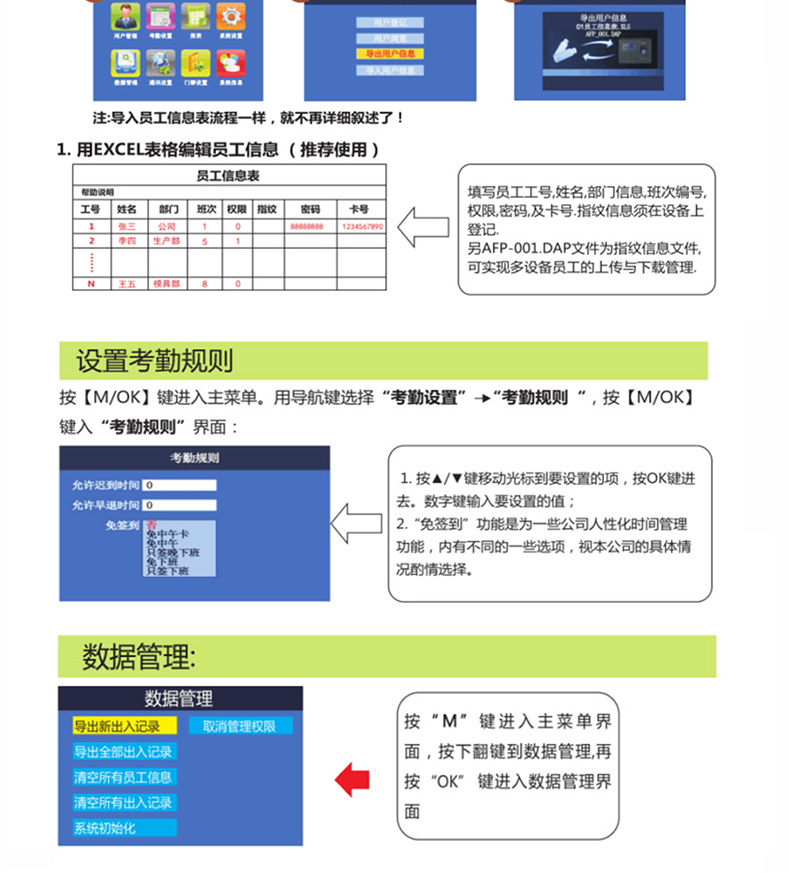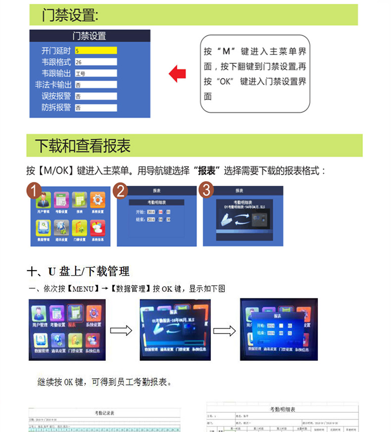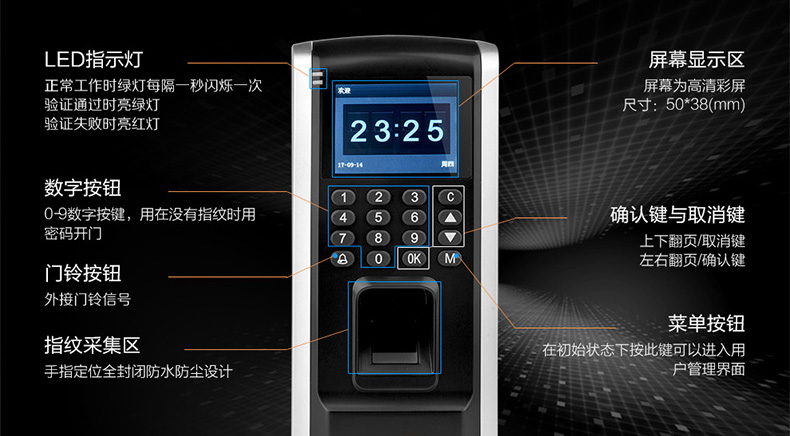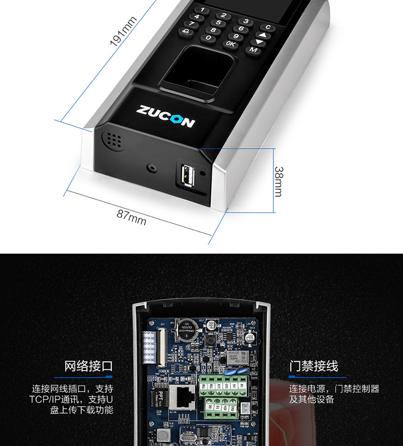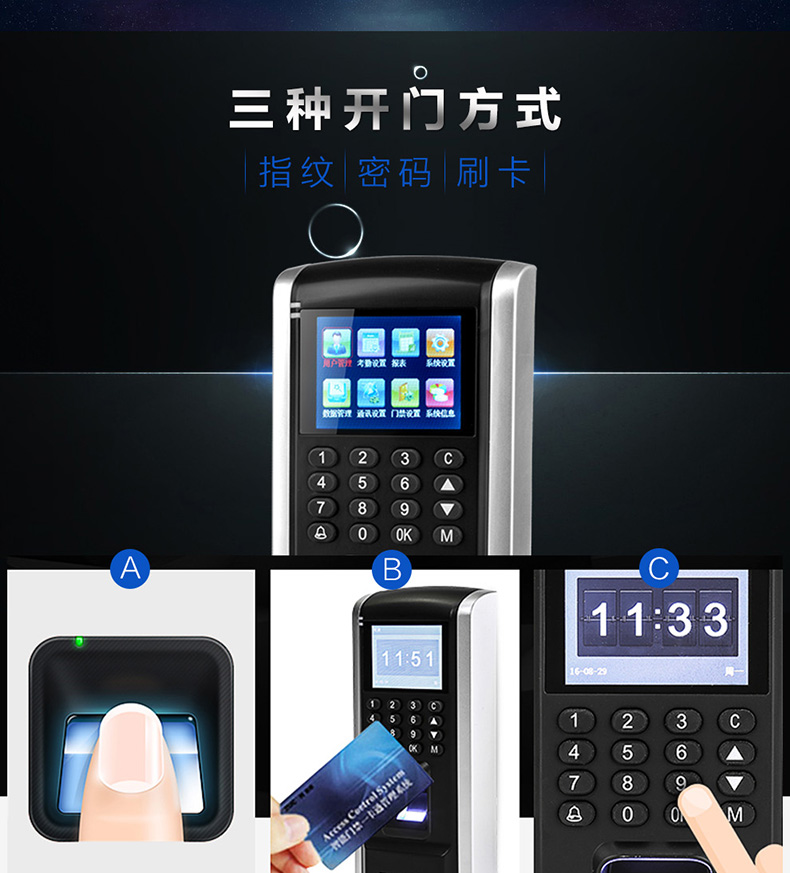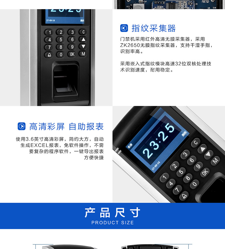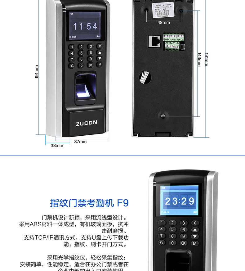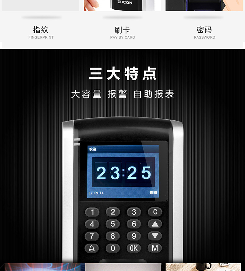 指纹刷卡密码门禁考勤主机网络U盘下载数据3000超大容