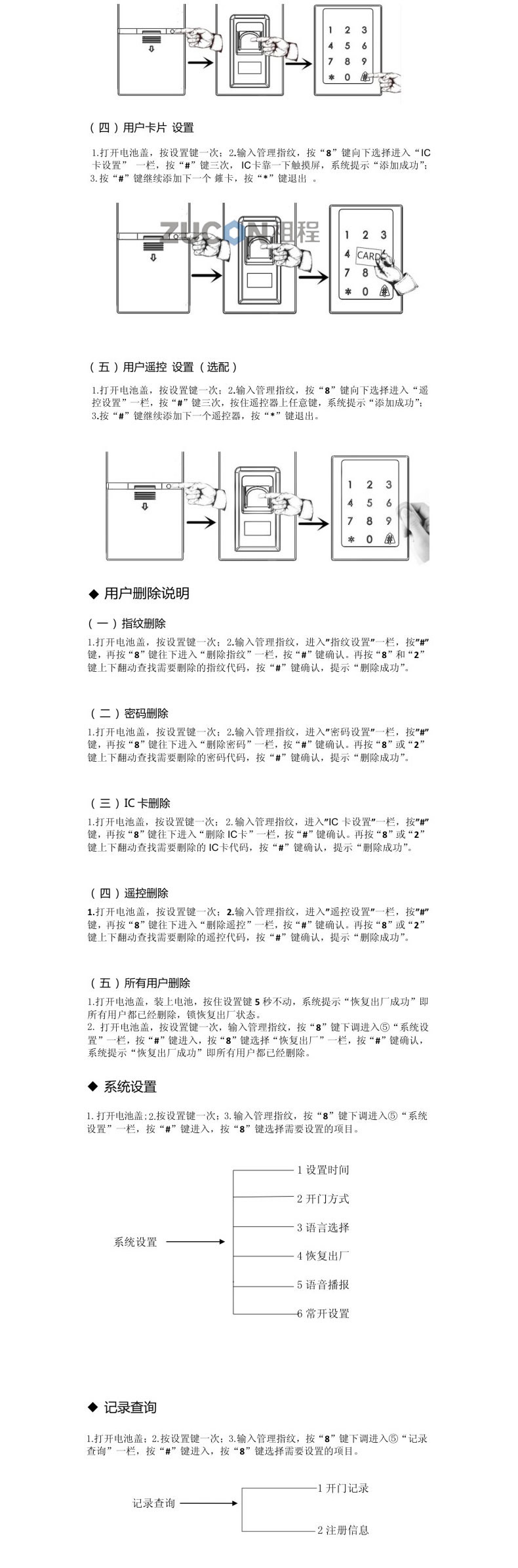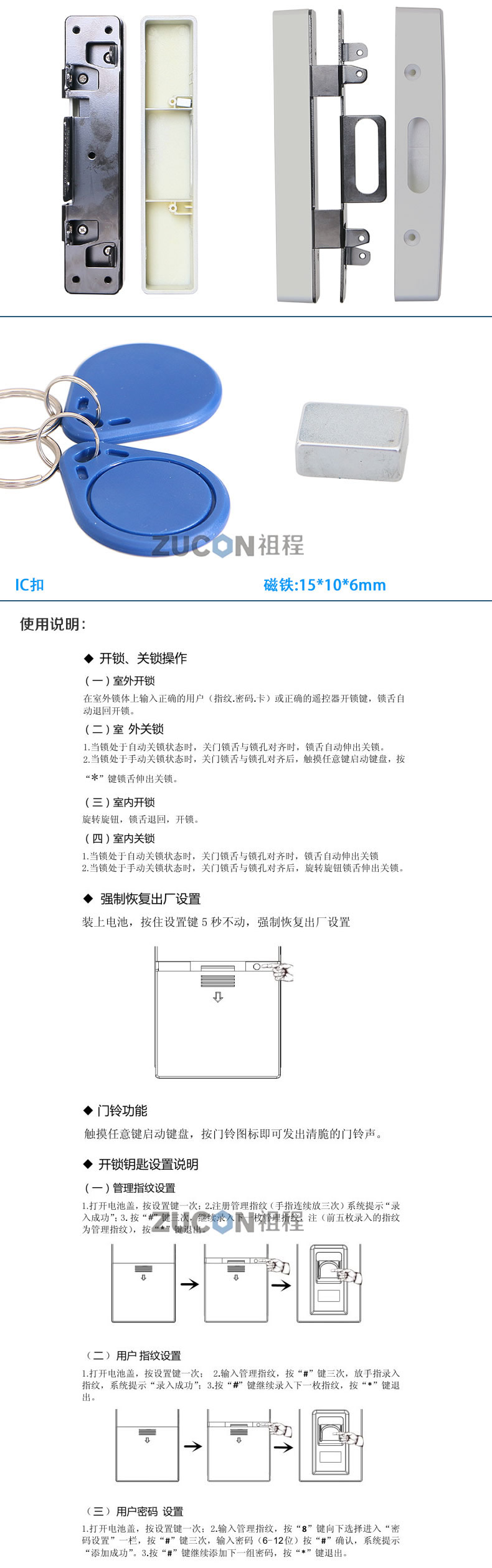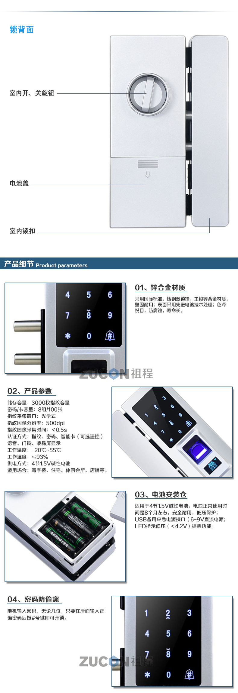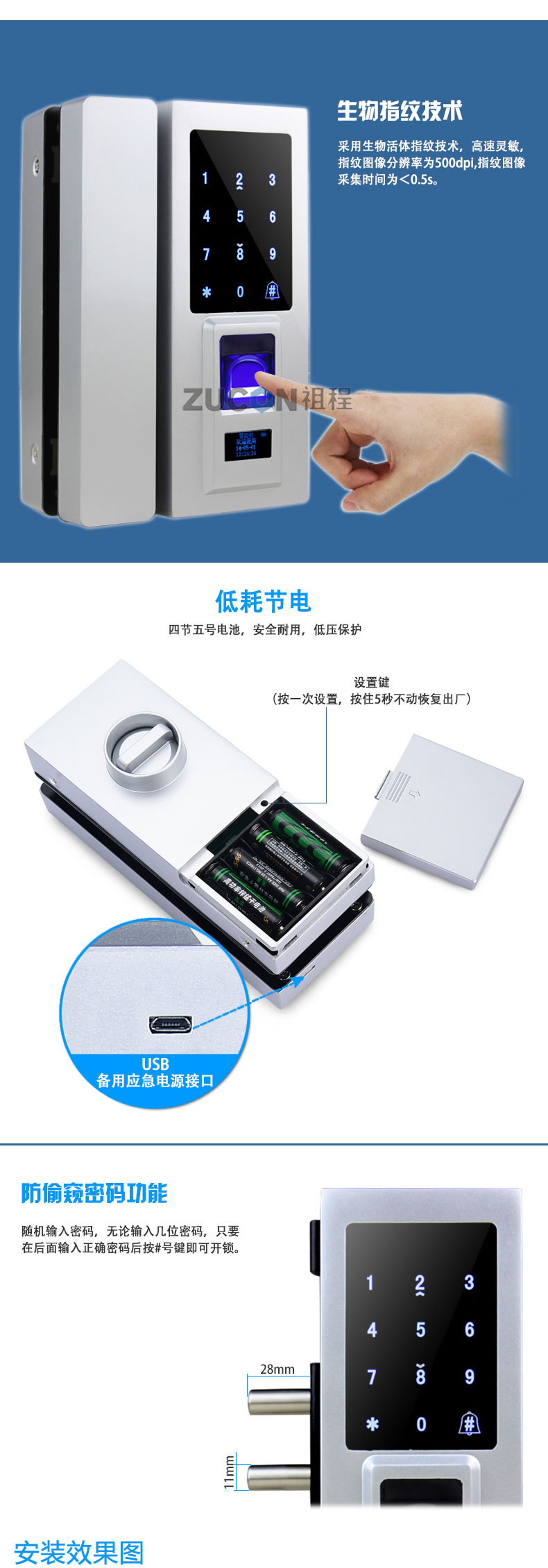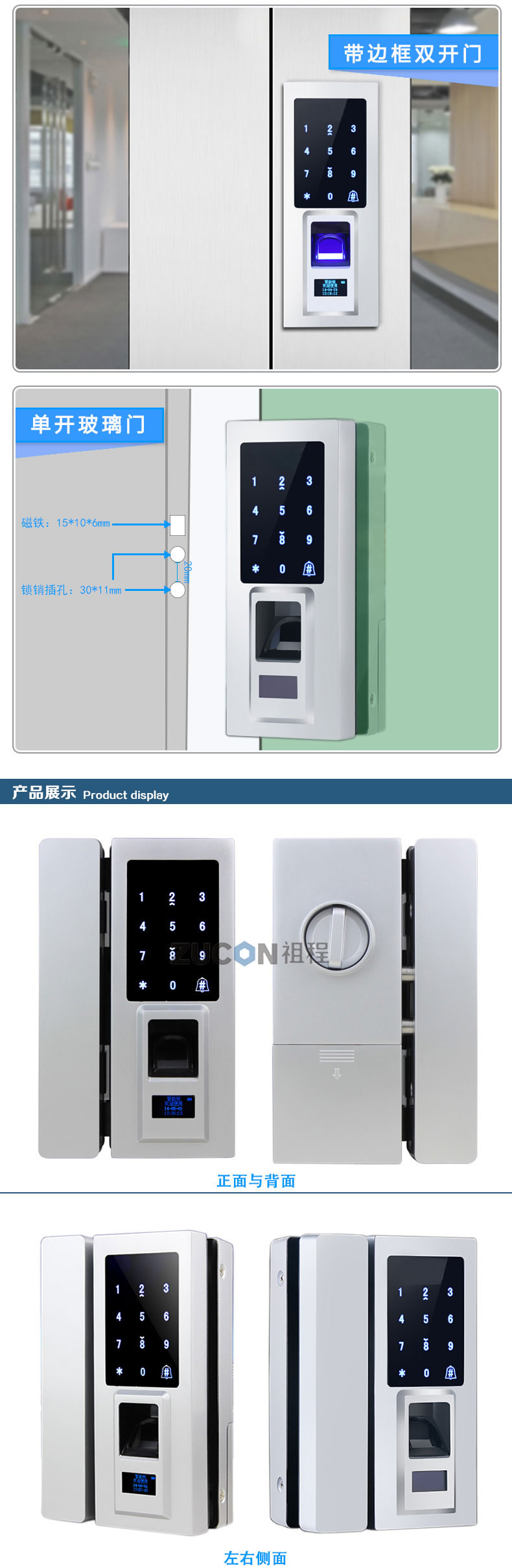 ZUCON 898F门禁锁 指纹密码刷卡 玻璃指纹锁免开孔 无线门禁一体机